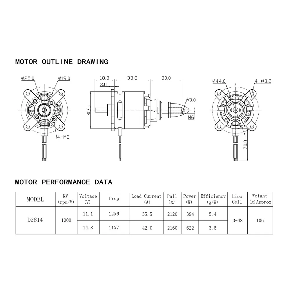 wonderful DXW D2814 2814 1000KV 3-4S 6mm Outrunner Brushless Motor for RC FPV Fixed Wing Drone Airplane Aircr